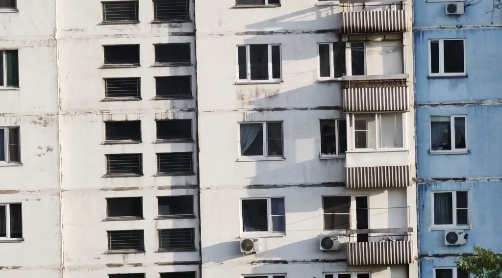 Продолжим дальнейшее исследование, рассмотрим еще одну серию снимков архитектуры. Расстояние до объекта съемки 200 метров. Центральная точка — окошко с занавесочкой.