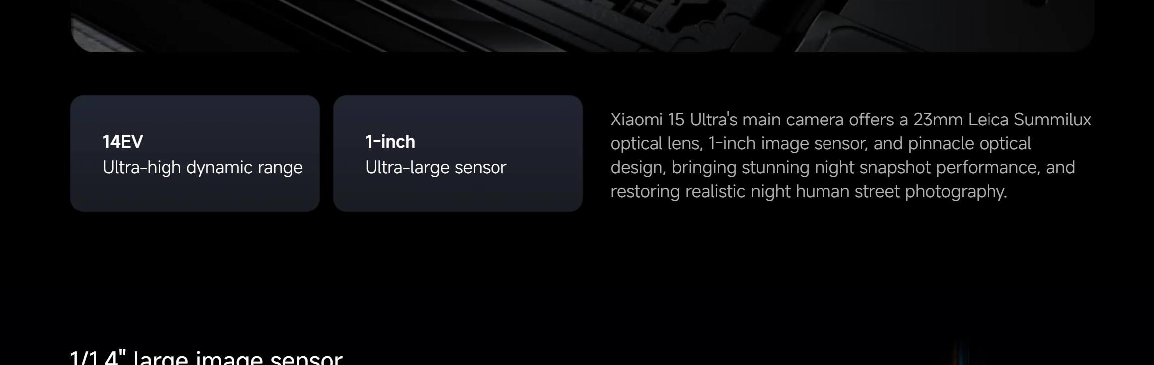 Основная камера оснащена сенсором LYT-900, который был установлен и на предыдущем фотофлагмане Xiaomi 14 Ultra. Сам сенсор был анонсирован в 2023 году и до сих пор не только актуален, а де-факто — лучший сенсор на рынке для компактной и мобильной фототехники. Xiaomi заявляет, что диагональ сенсора 1 дюйм, но на самом деле он немножко больше — 1,02 дюйма, но такие подробности не нужны большинству потребителей.