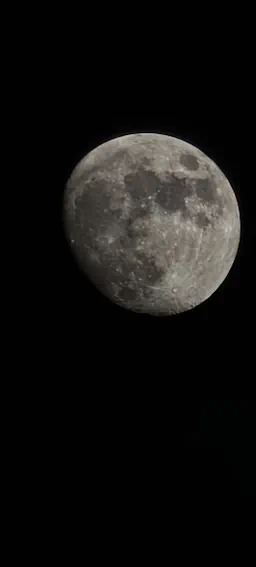 Идем дальше. Съемка архитектуры — конечно, хорошо, но ведь перископную камеру можно было бы использовать и для съемки разнообразных небесных тел. Например, Луны. Что же, надо попробовать, тем более что Луна вот она, прямо на небосводе. В отличие от режима «Суперлуние», когда телефон просто рисует ночное светило на темном фоне в соответствии с его фазой в данной географической точке, Луну можно попробовать снять и в реальности. Для этого нужен хороший штатив и определенная сноровка. Сноровка в том плане, что Луна движется вокруг Земли и при большом приближении ее еще нужно поймать в кадр, успеть зафиксировать штатив и снять снимок. Иначе она довольно быстро «убегает» из поля зрения. Используем цифровой зум и восстановительные технологии из серии искусственного интеллекта.
