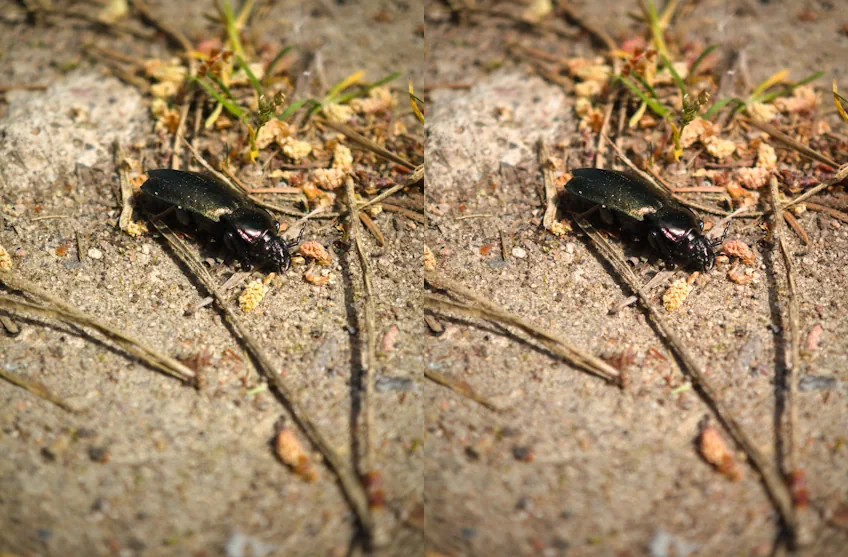 Коллаж из двух фотографий мертвого жука выше как раз и представляет образец удачного применения построенного ранее профиля. Фотография снята на Floating Telephoto 70mm объектив в макрорежиме и в обычном RAW-файле. На первый взгляд они идентичны по оттенкам. Но только на первый взгляд. Фотография была обработана только применением цветового профиля в RawTherapee. К левой фотографии применен встроенный в DNG-файл профиль, а к правой применен профиль, созданный в Calibrite. И если ваш монитор хорошо откалиброван (подозреваю, что на экране мобильного телефона разницы в тонах между изображениями будет не разобрать), а глаза еще не потеряли способность к анализу цвета, то разница видна. Левая часть отдает излишней зеленью, особенно песок. Правая же часть обладает меньшим зеленым оттенком, что куда ближе к оригинальному цвету песка. А если вспомнить таблицу с анализом расхождений между Colorchecker и тем, что снято, то наибольшее расхождение для двух телемодулей находится именно в спектре зеленого цвета.